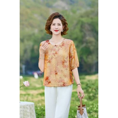 洋气中老年女装碎花浮光锦宽松遮肚上衣 8821款【15天内发货】