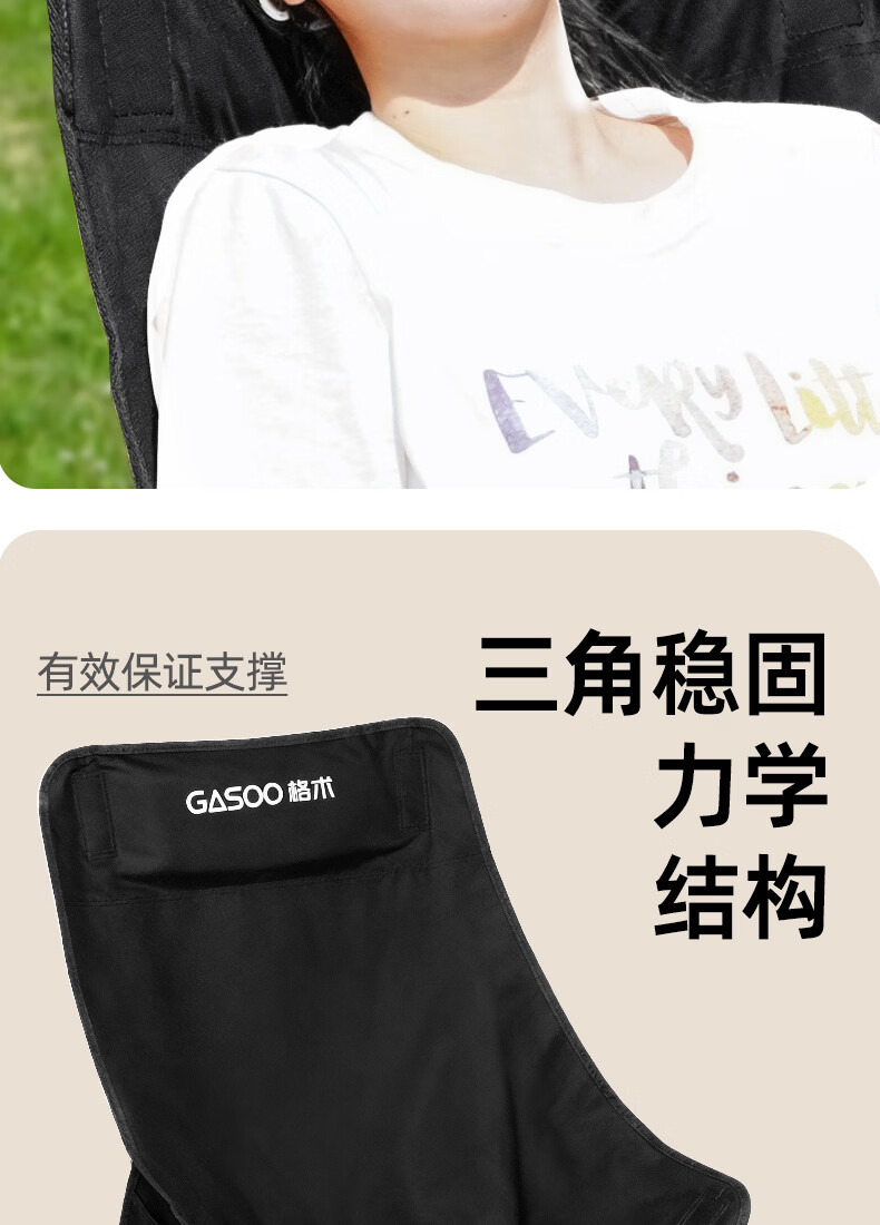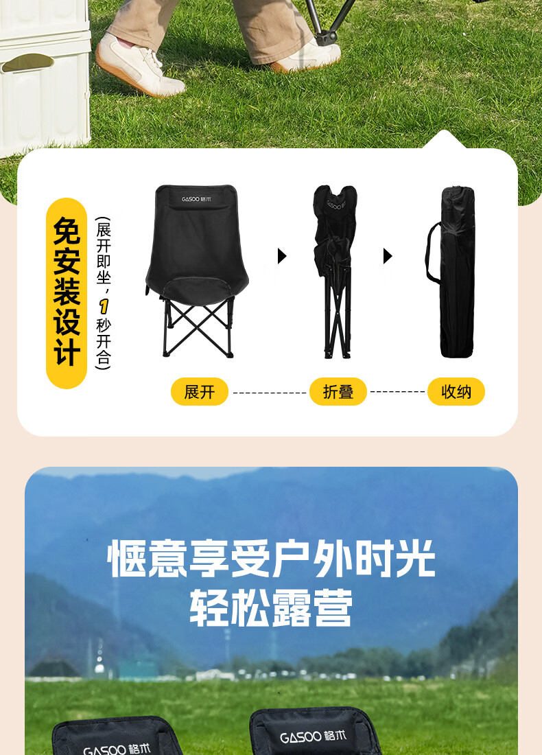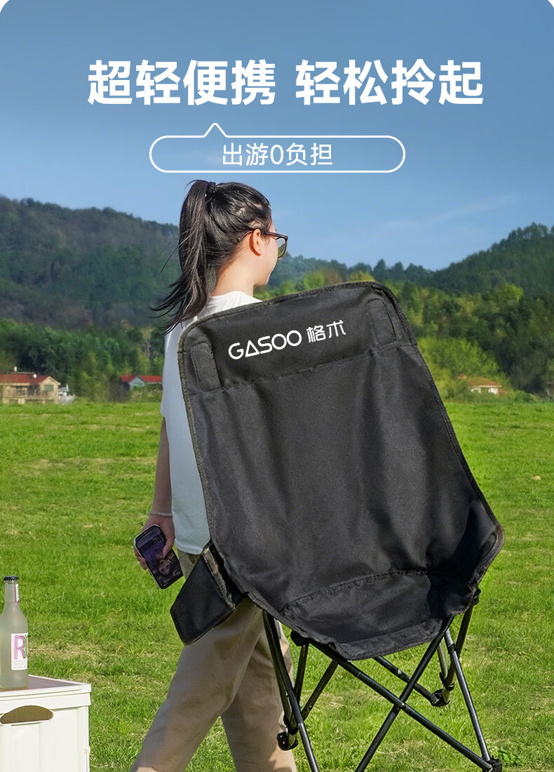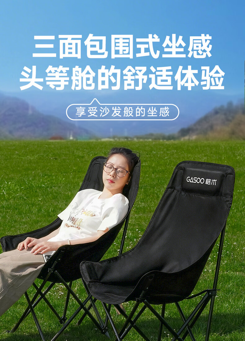 gosoo户外折叠椅 露营椅子 加高靠背月亮椅便携野餐折叠凳子躺椅钓鱼椅