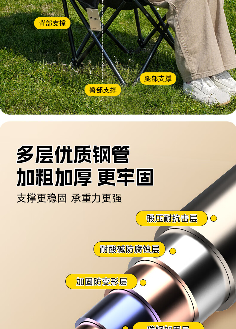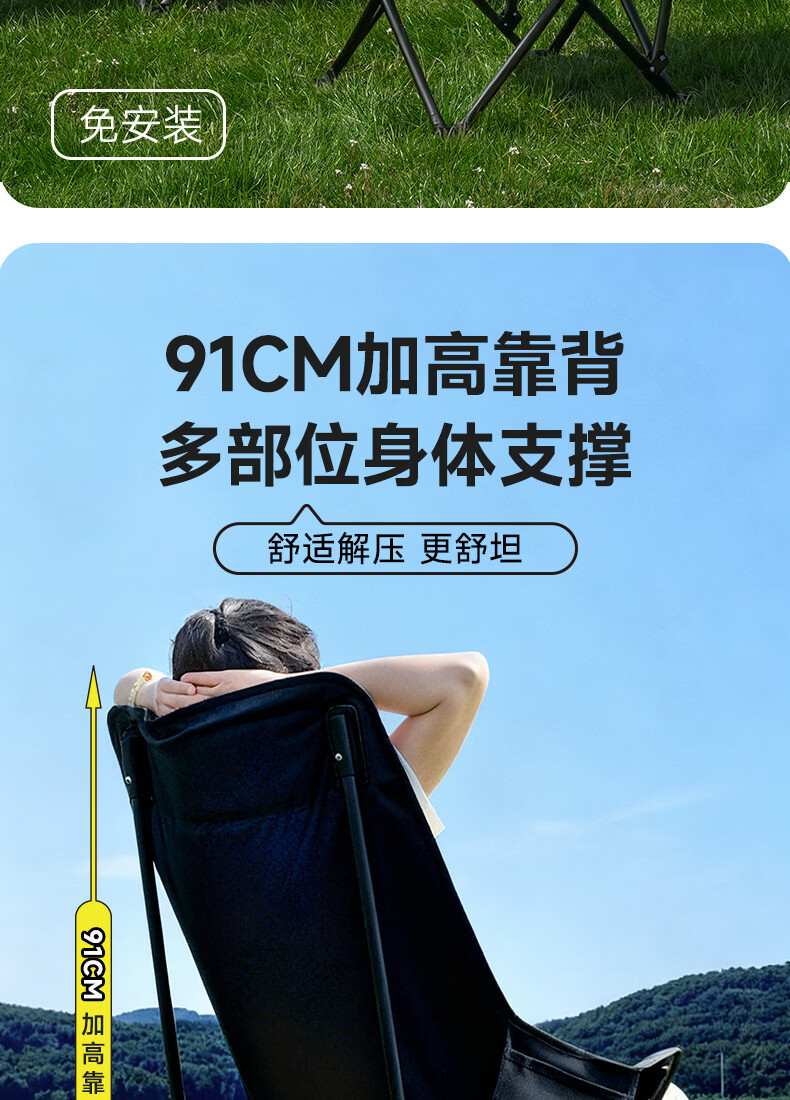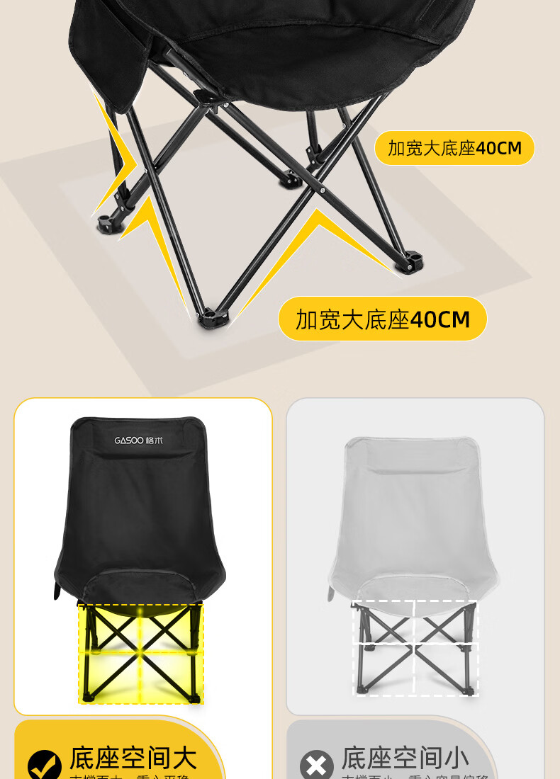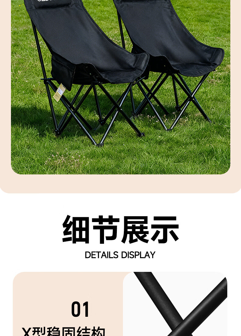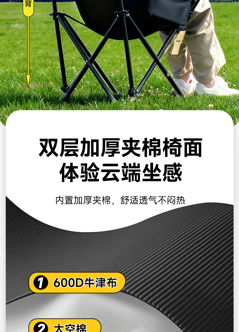 gosoo户外折叠椅 露营椅子 加高靠背月亮椅便携野餐折叠凳子躺椅钓鱼椅