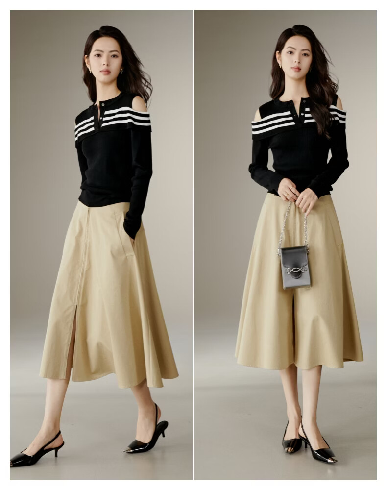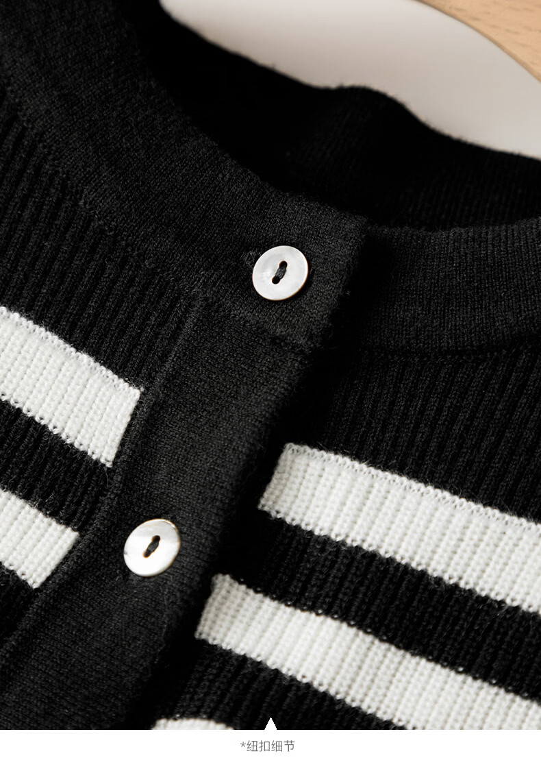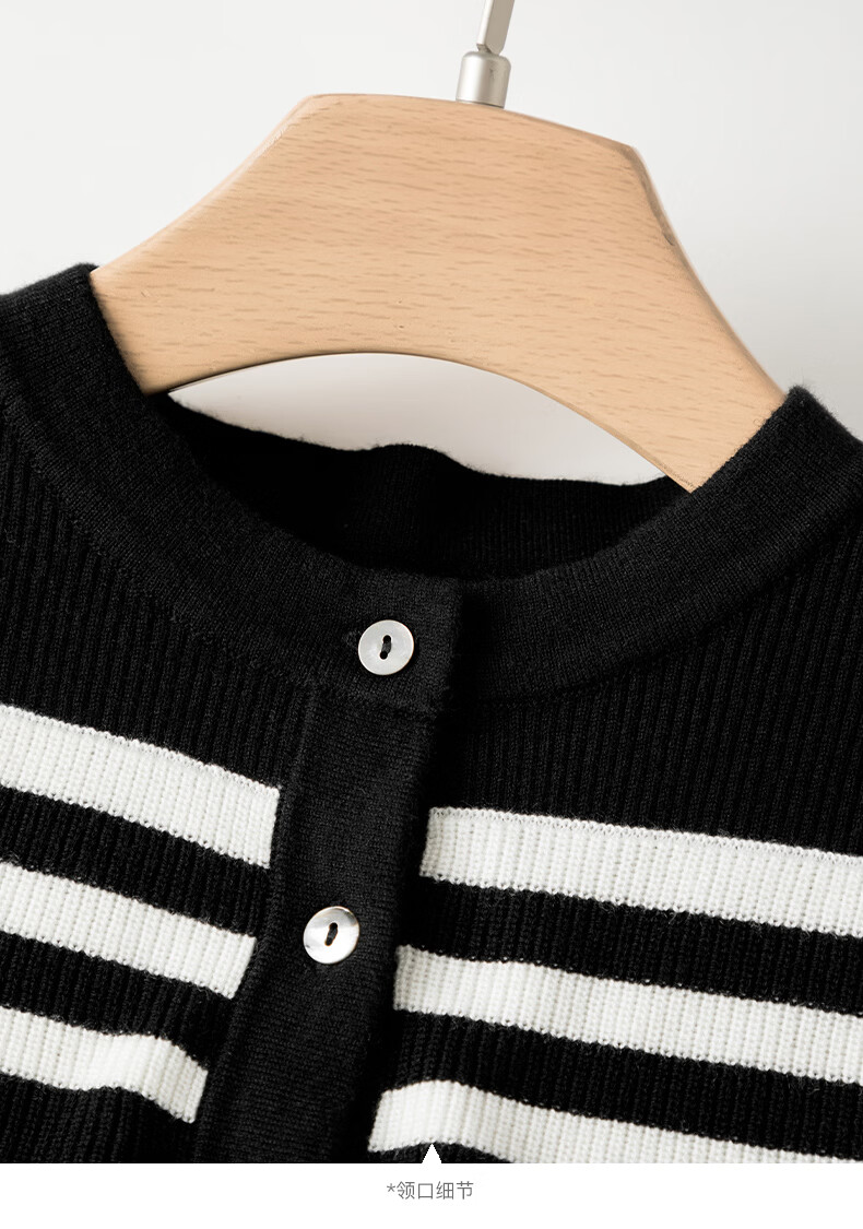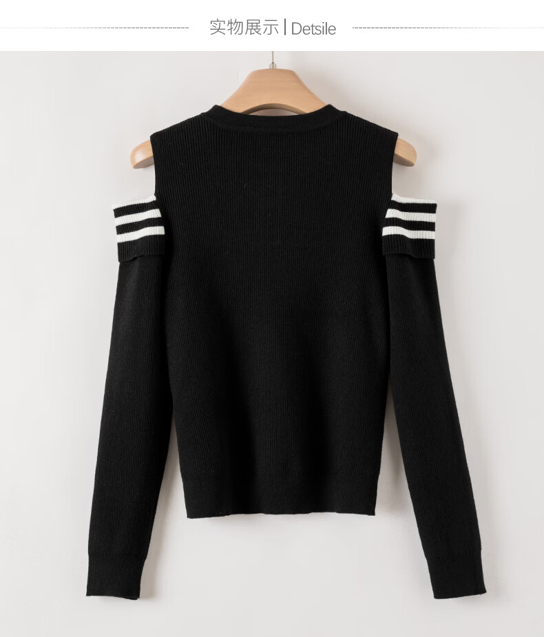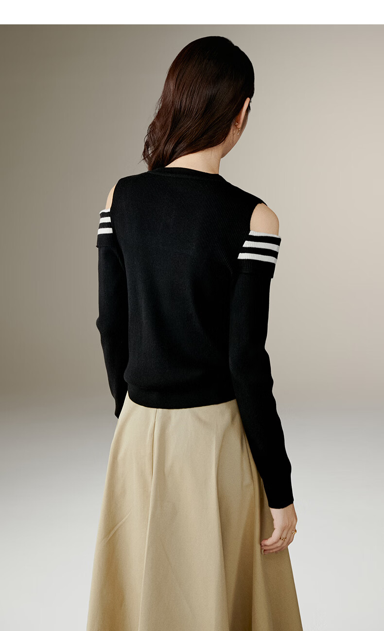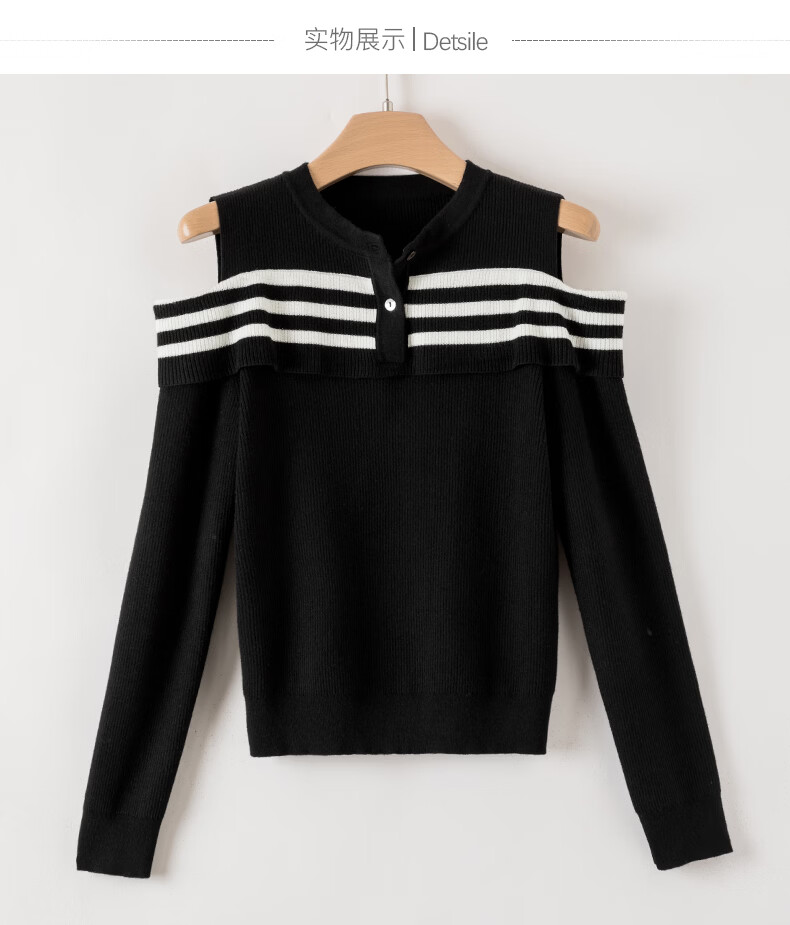 晚白【新品】2026年春款时尚条纹撞色露肩毛衣含羊毛柔软舒适针织衫女 黑色 S