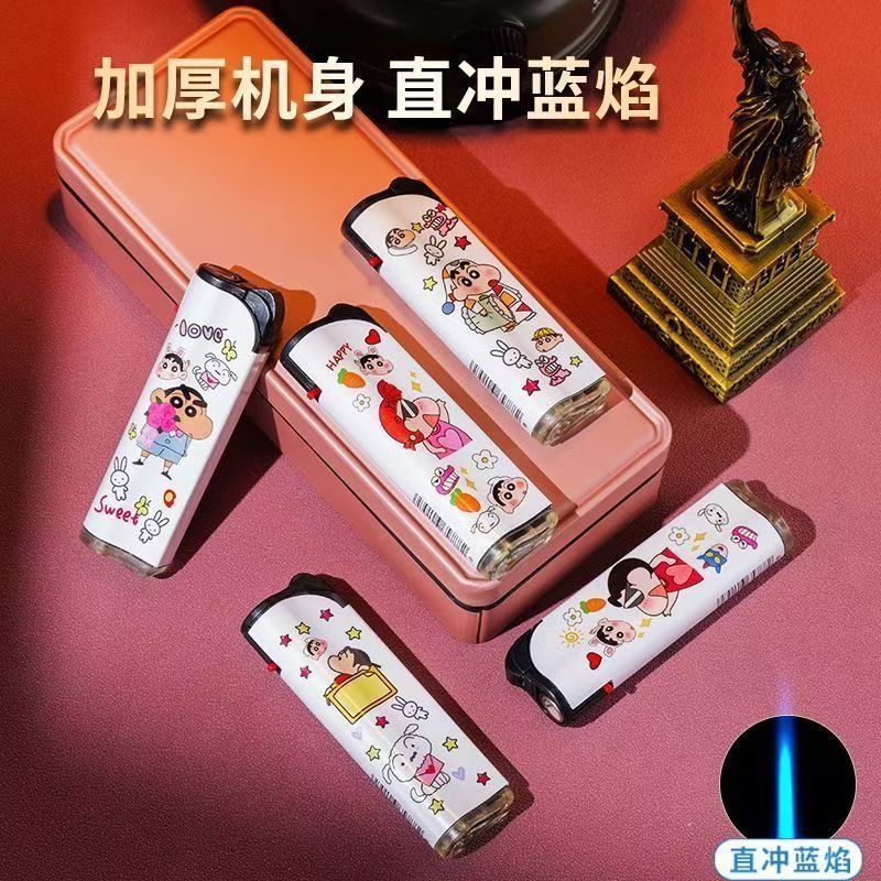 【五支起售】可爱高颜值卡通动漫蜡笔小新蓝焰直冲防风打火机