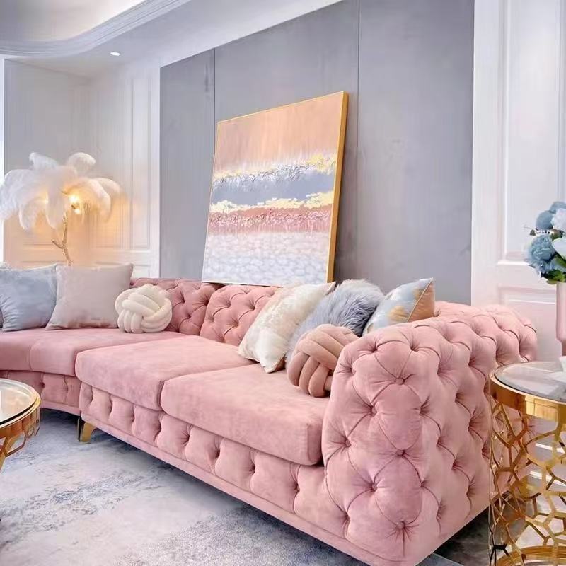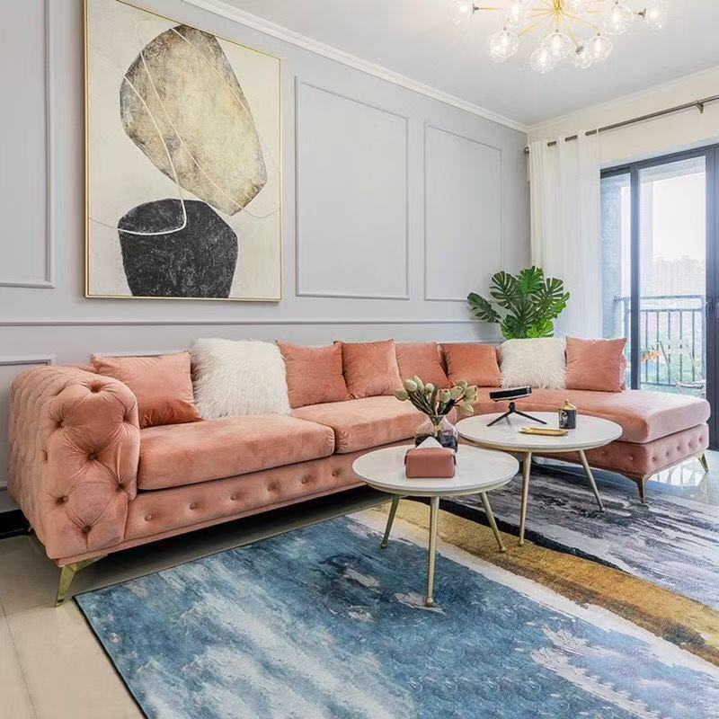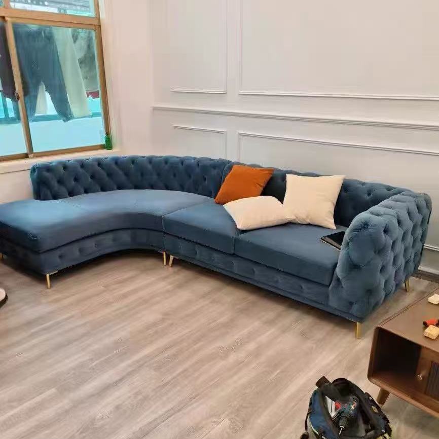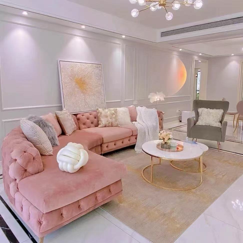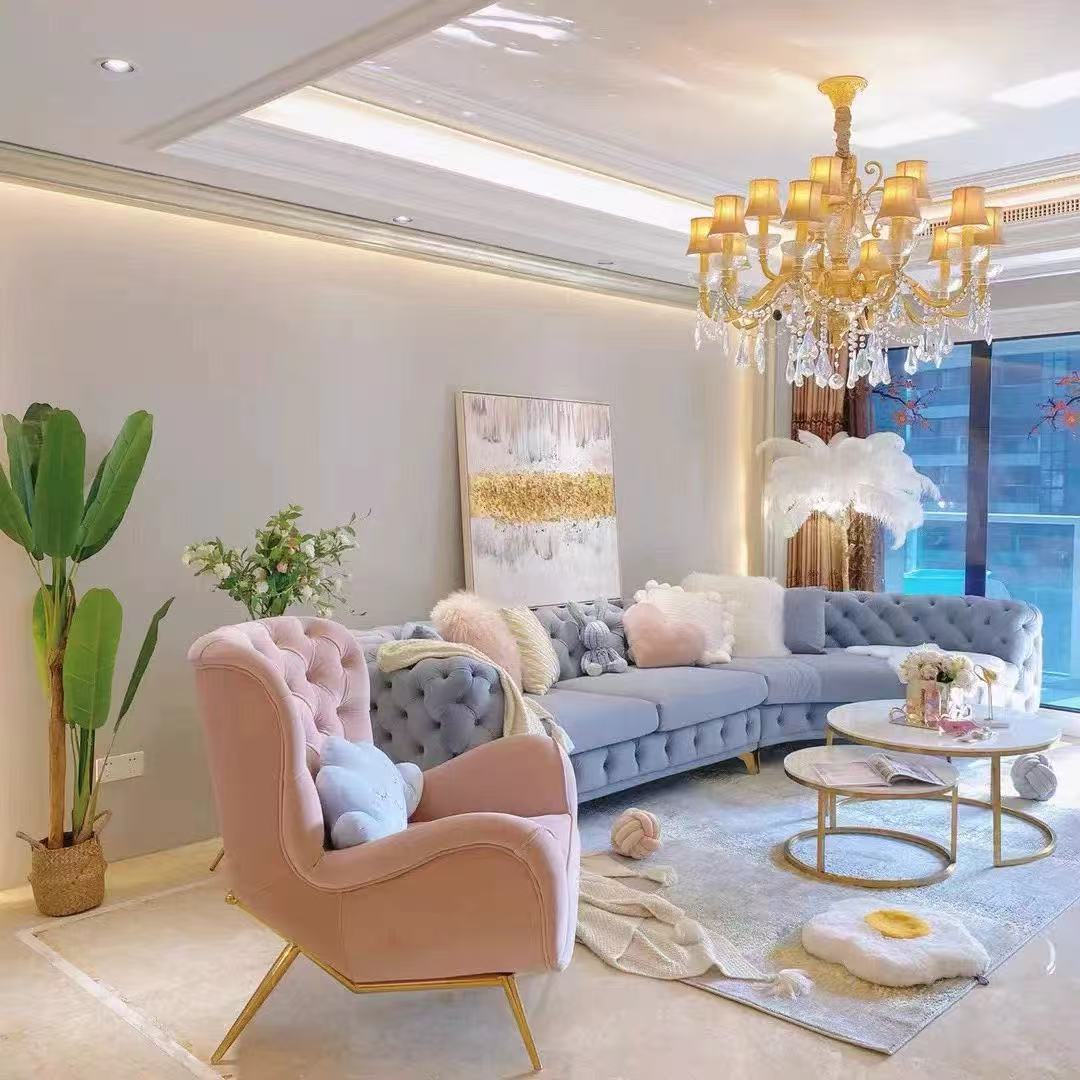 法式轻奢高档奢华转角组合拉扣美容院设计师高端网红客厅弧形沙发