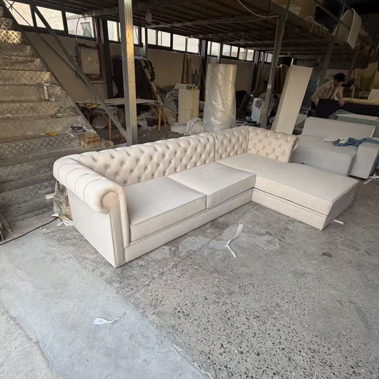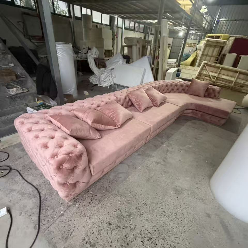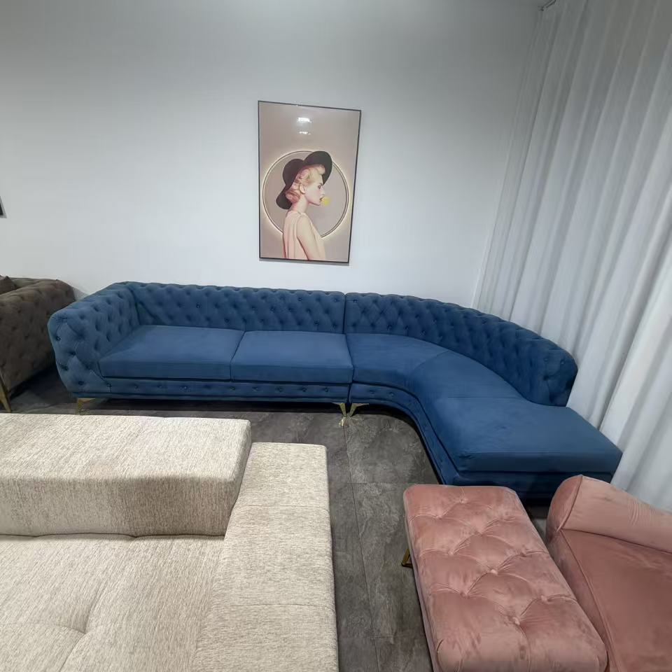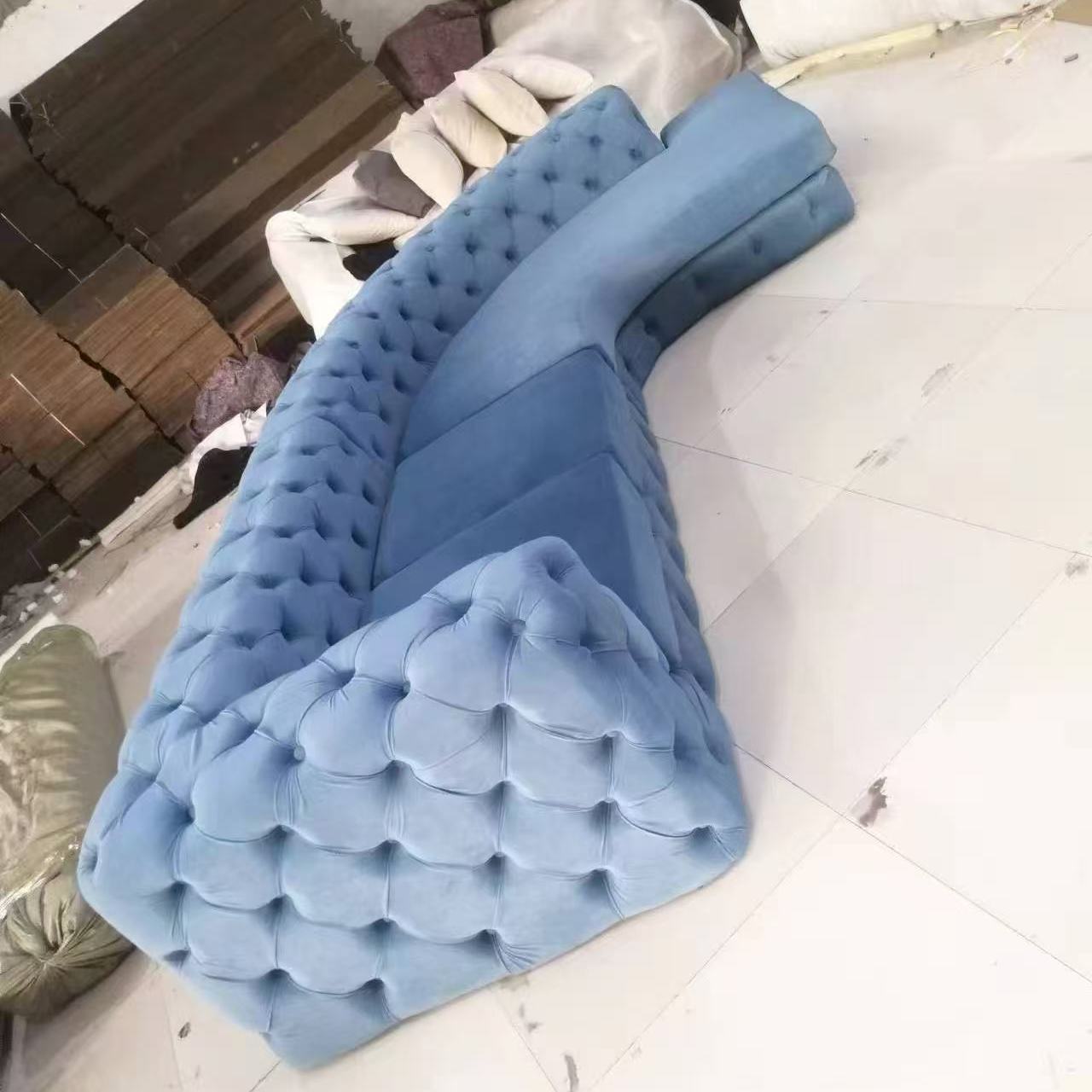法式轻奢高档奢华转角组合拉扣美容院设计师高端网红客厅弧形沙发